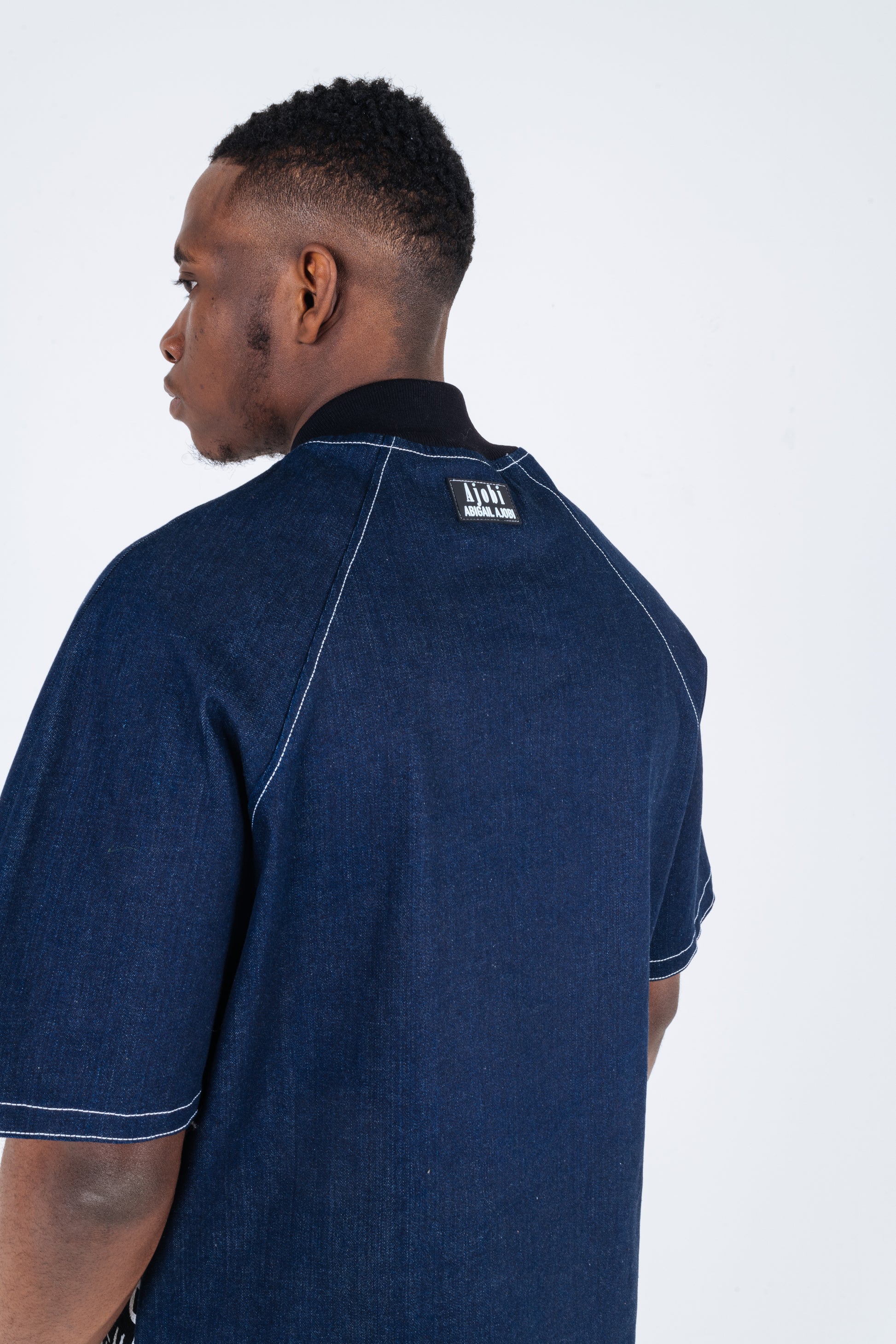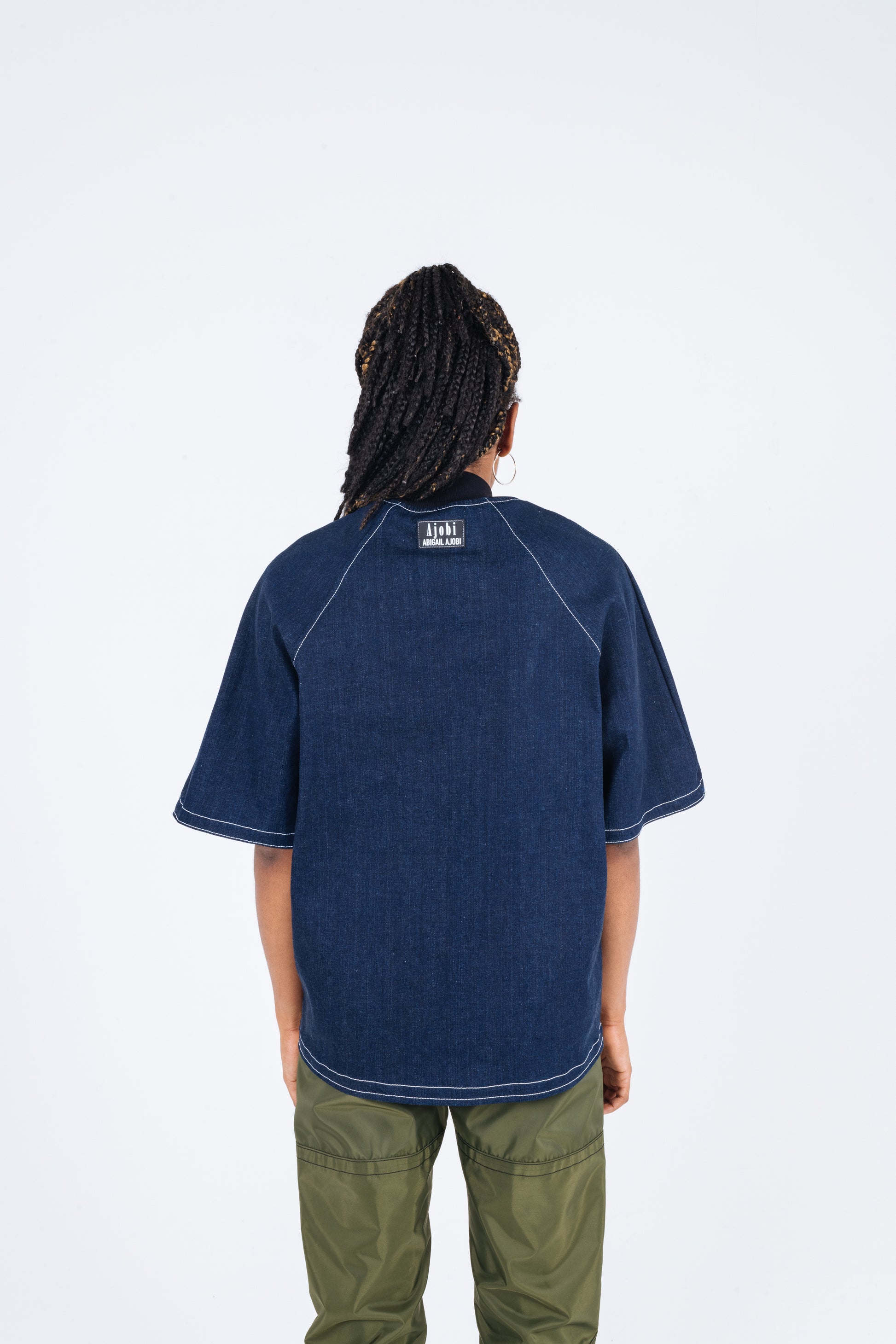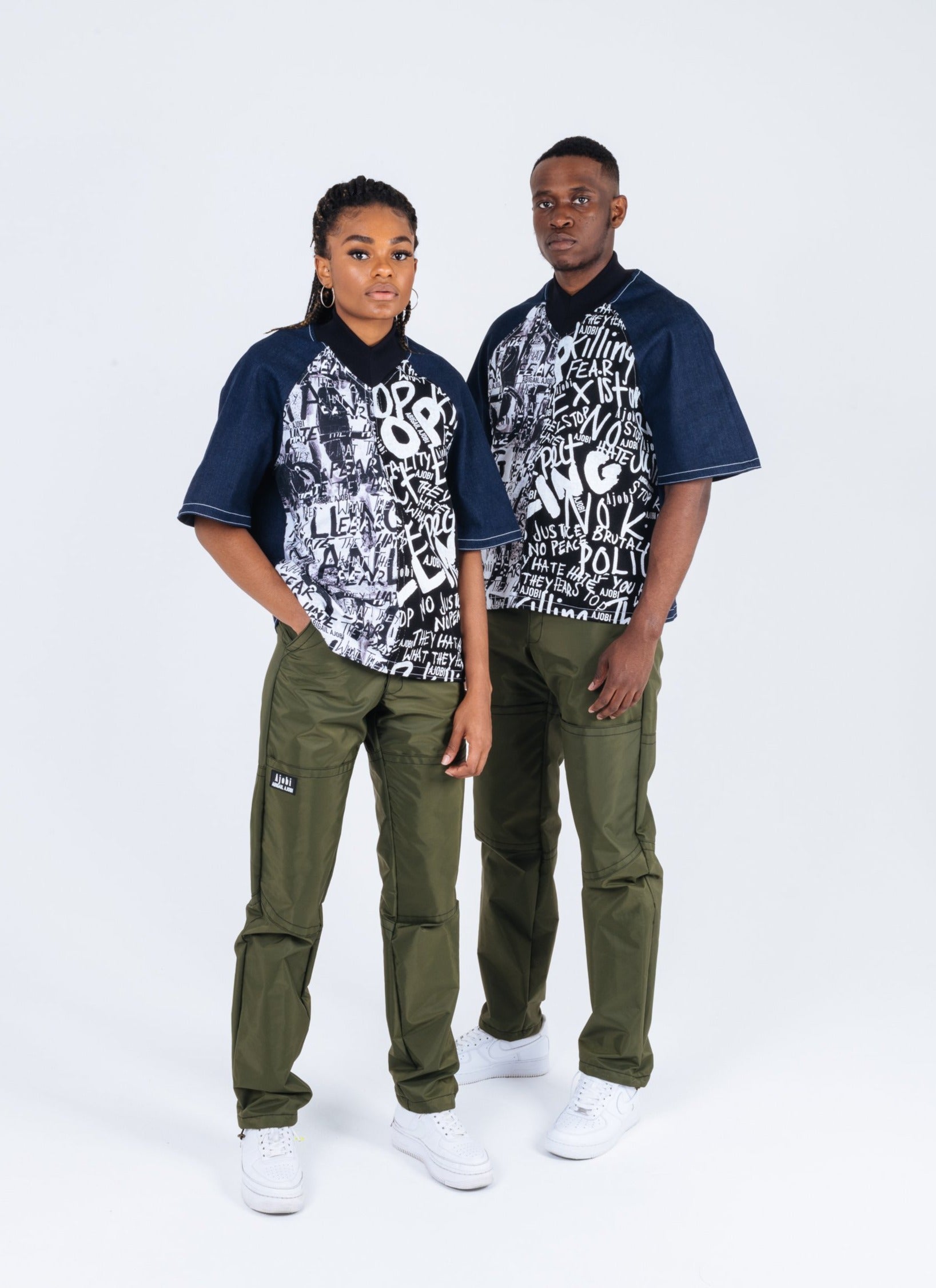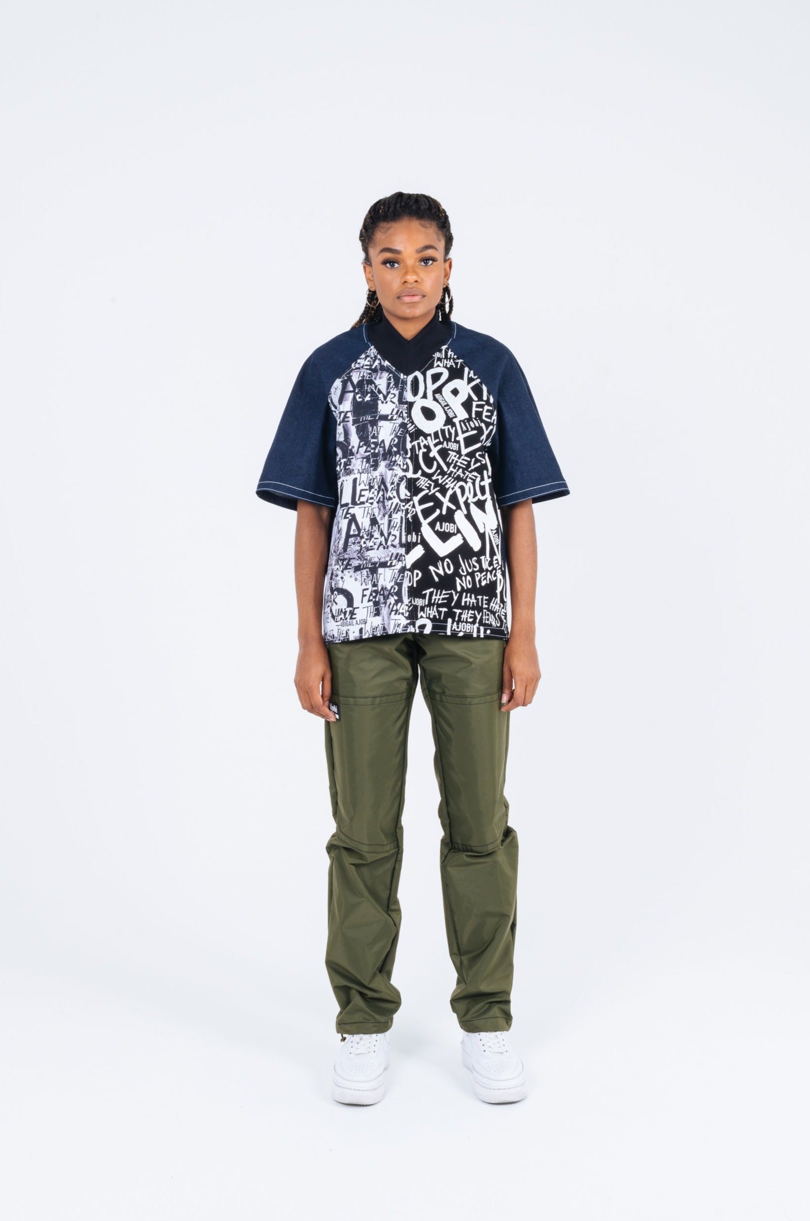 Printed Short sleeve raglan Top with ribbed neck. With a combination of Hand Printed and digital printed panels.